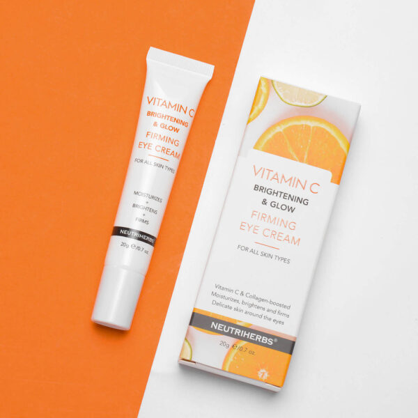 Neutriherbs Vitamin C Eye Cream with cooling gel formula deeply moisturizes the delicate skin around the eyes while helping brighten and smooth to make the eye area even more radiant. The hydrating hyaluronic acid, niacinamide, and collagen also help to firm skin, improve elasticity and diminish dark circles and puffiness.